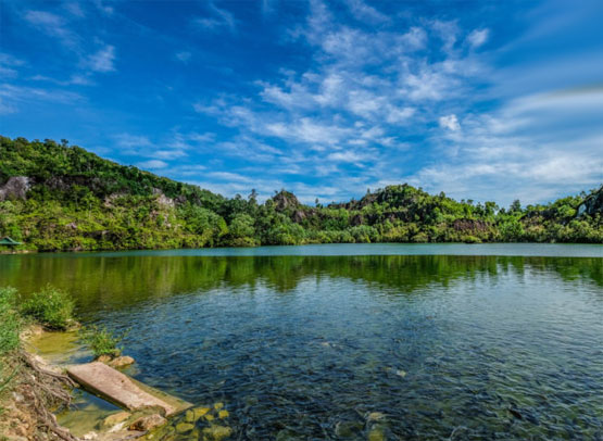 ระนองแคนยอน เป็นภูเขาหินปูนที่ถูกกัดเซาะจนเว้าแหว่งเกิดแอ่งน้ำขนาดใหญ่น้ำใสสีเขียว