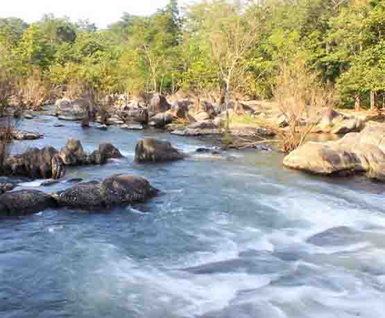 แก่งส้มแมว แก่งน้ำกลางป่าในสวนผึ้ง ลำธารน้ำภาชีไหลเซาะเกาะแก่งโขดหินสวยงามเนื่องจากเป็นแก่งหิน